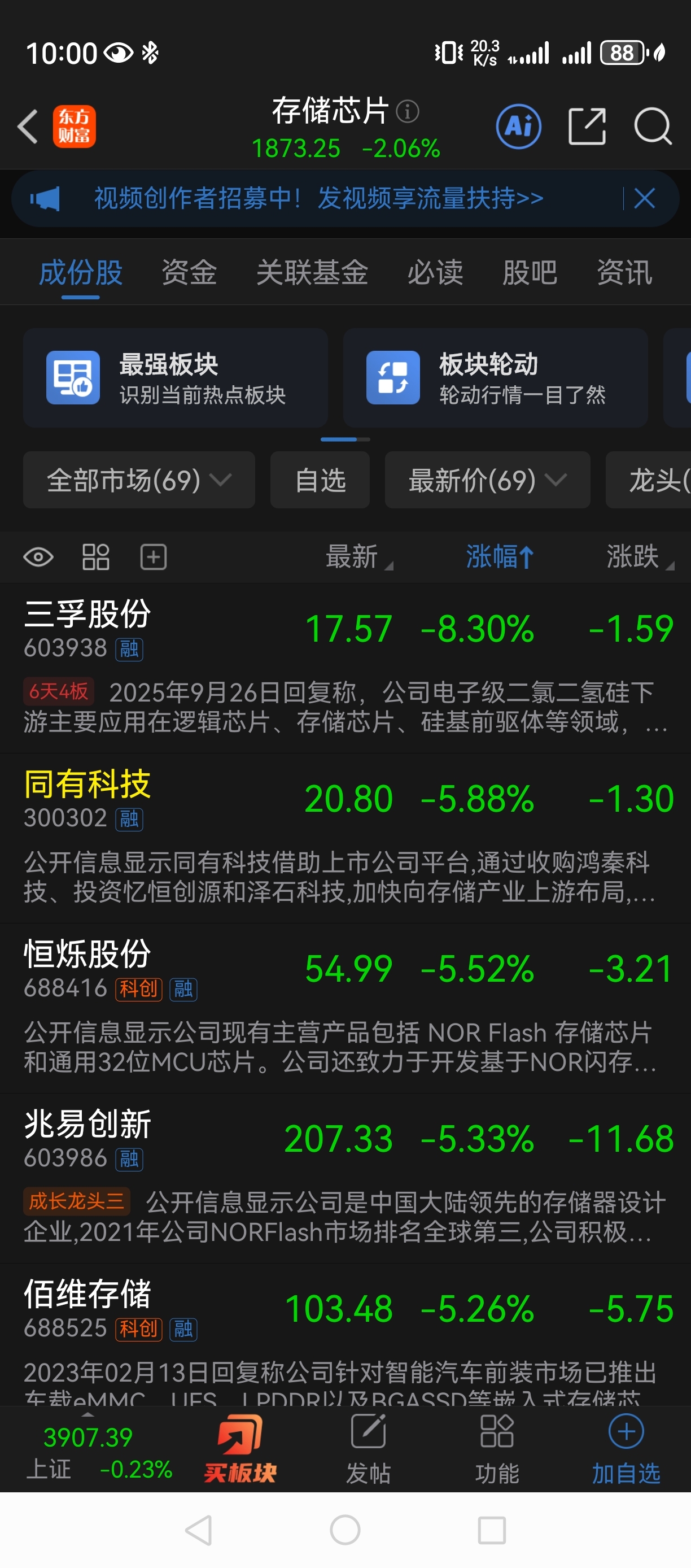 $同有科技(SZ300302)$ 板块倒数,上涨倒数,下跌也是倒数