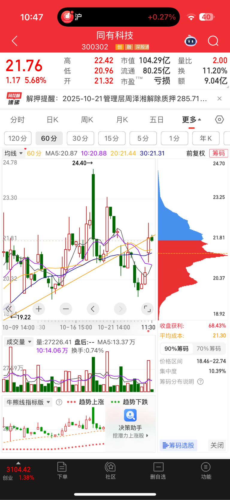 $同有科技(SZ300302)$ 压力位有点上不去,各位怎么看