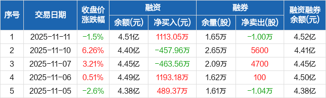 同有科技:融资净买入1113.05万元,融资余额4.51亿元(11-11)