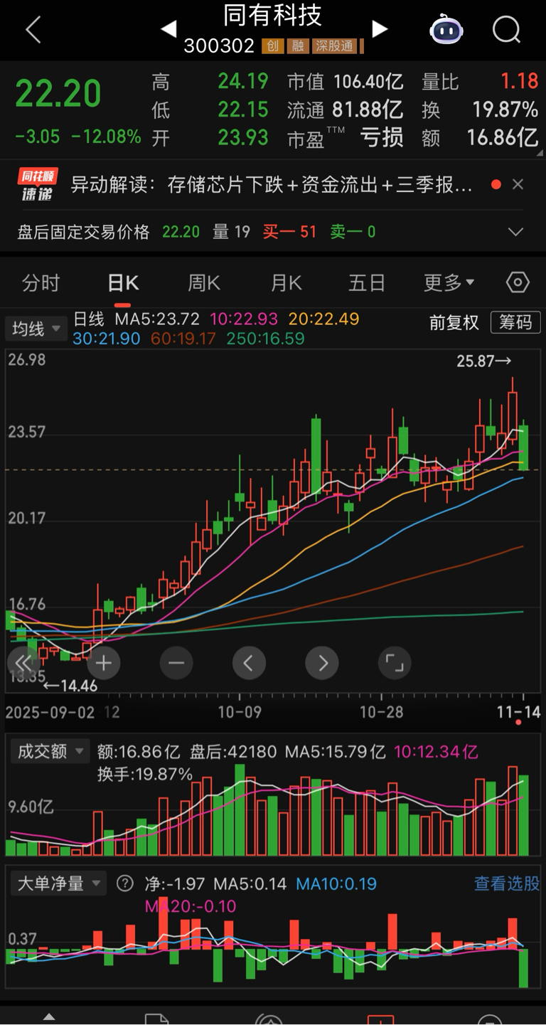 $同有科技(SZ300302)$ 大单流出量历史最大,看右下角,要不那个下面有框框住了,这根大绿柱能穿破屏幕,这是哪路资金在清仓啊