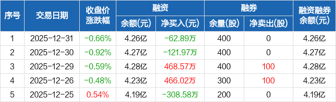 同有科技:融资净偿还62.89万元,融资余额4.26亿元(12-31)