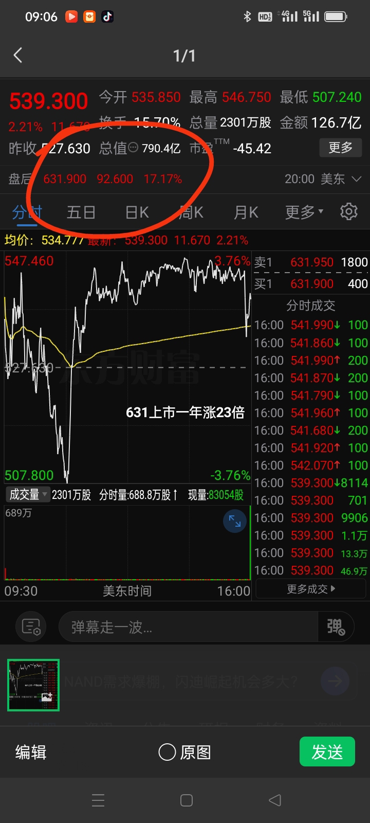 闪迪疯了盘后大涨17.17%一年涨23倍!