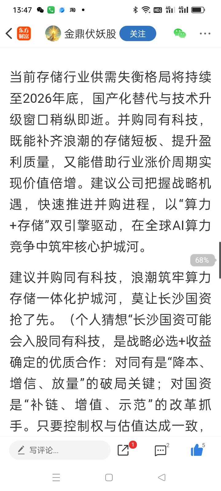 昨天浪潮信息的股东提议并购同有科技!