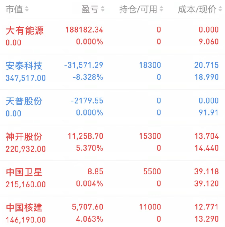 大有能源:盘前已经提示,来到了鱼尾段。所以跟随老秦的朋友,今天就是卖出为主。实际上比预期更弱点,因为只勉强高开了3%,开盘几秒,无力,然后瀑布,老秦也清仓了。这单拿下52%的获利,非常爽!上次有这个战绩,还是在首开上面的。所以说,笼头的机会大家不能轻易错过,因为它能给你单车变摩托的机会。$大有能源(SH600403)$