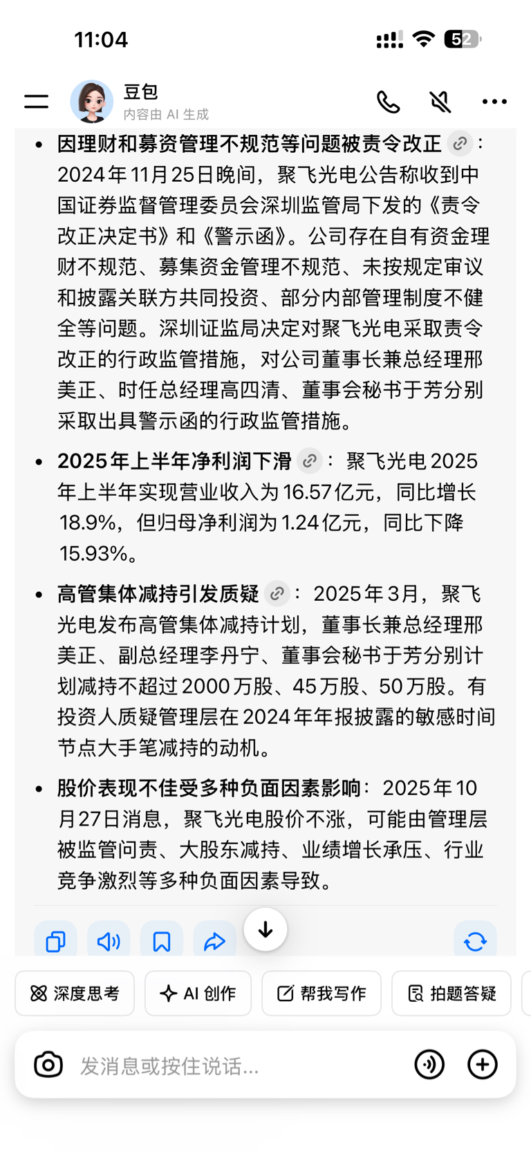 $聚飞光电(SZ300303)$ 没事喜欢问问豆包