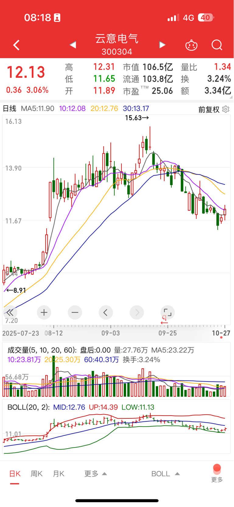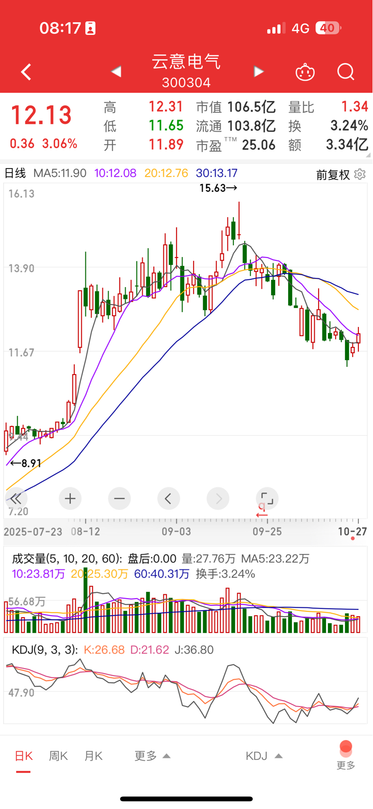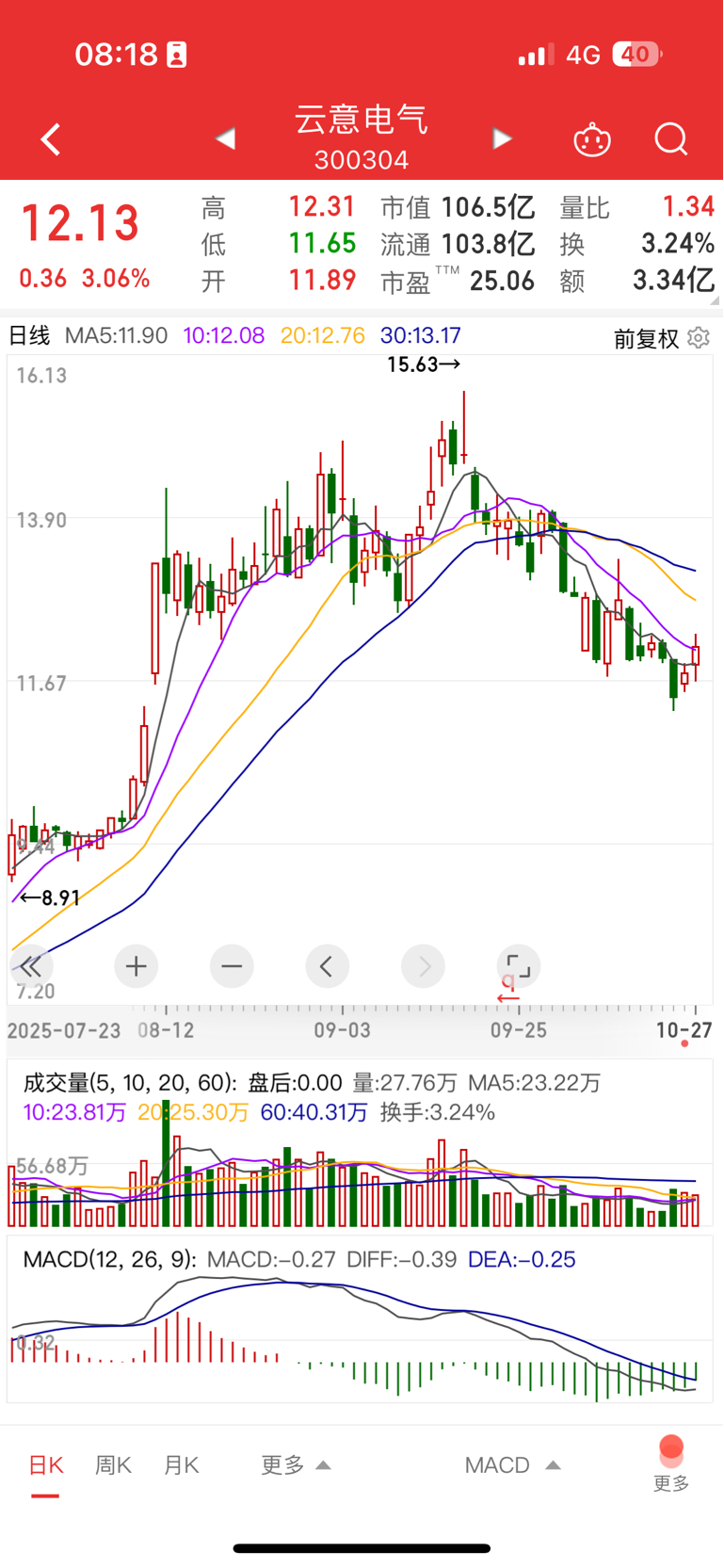 $云意电气(SZ300304)$ 三季报股东人数减少了八千多,说话的自然少了。指标macd 、kdj、都在修复向好。看看截图吧。