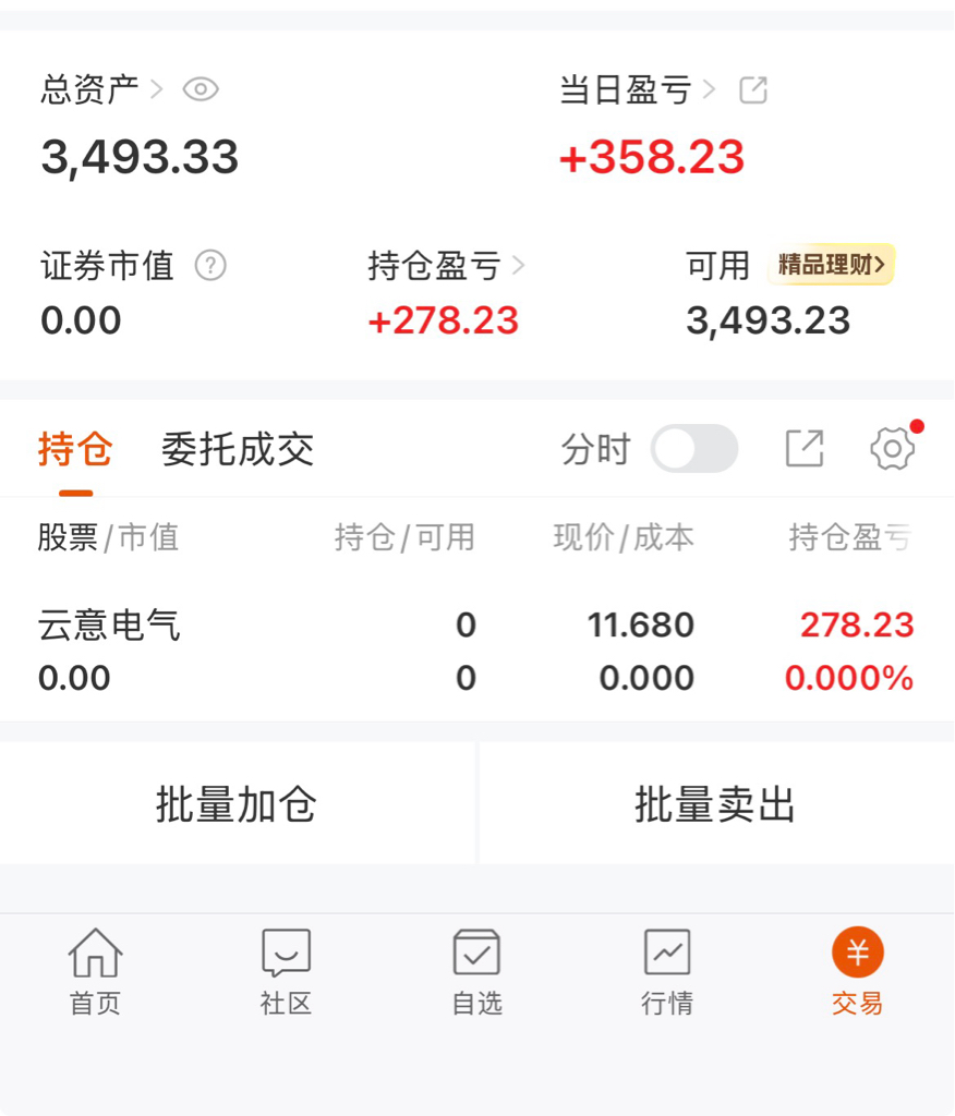 $云意电气(SZ300304)$ 昨天买三手,收盘亏八十,今天高位清仓,赚了一天工资,舒服