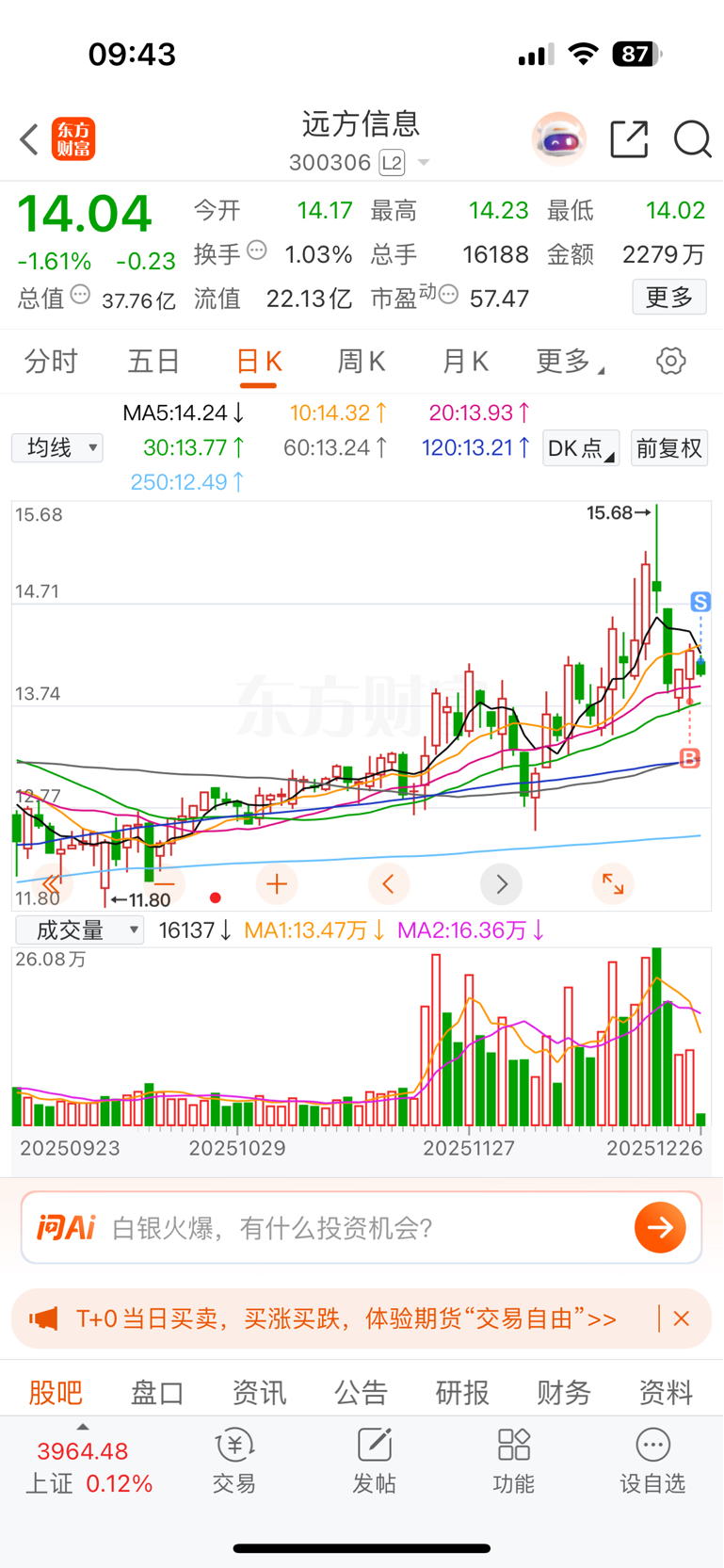 $远方信息(SZ300306)$ 小挣一点,谢谢主力,留下的发财