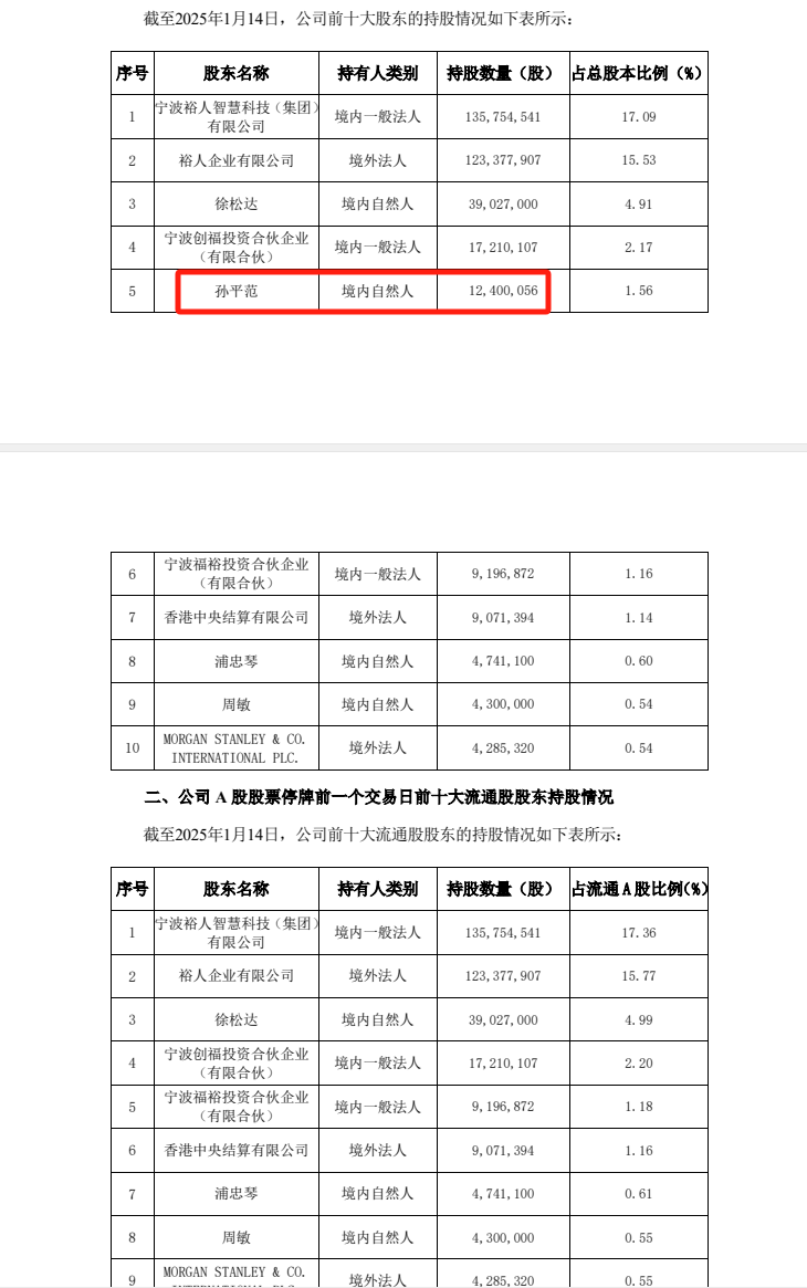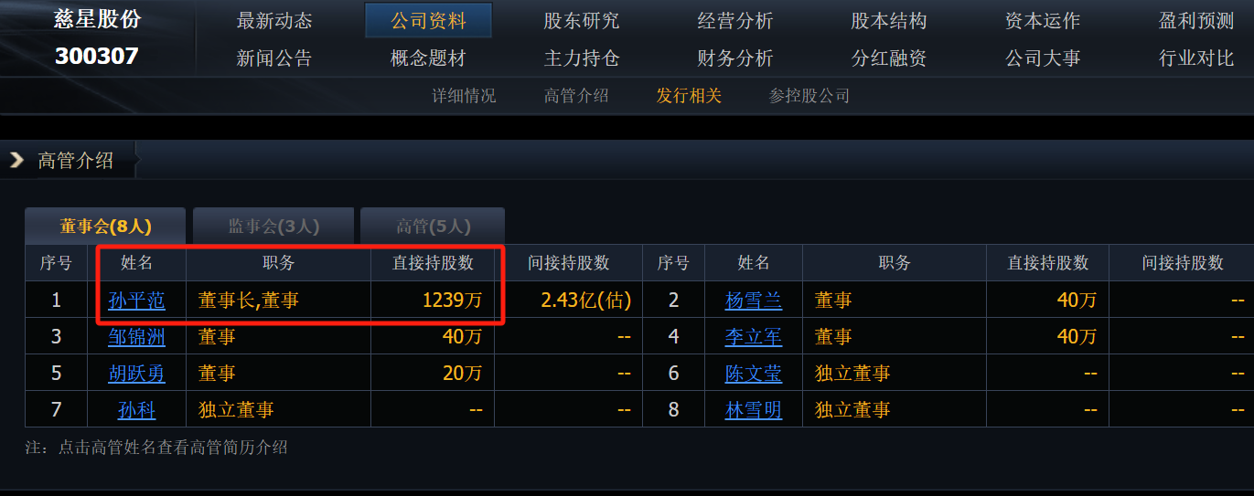 董事长孙平范的1240万直接股是何时不见的?有提前公示吗?
