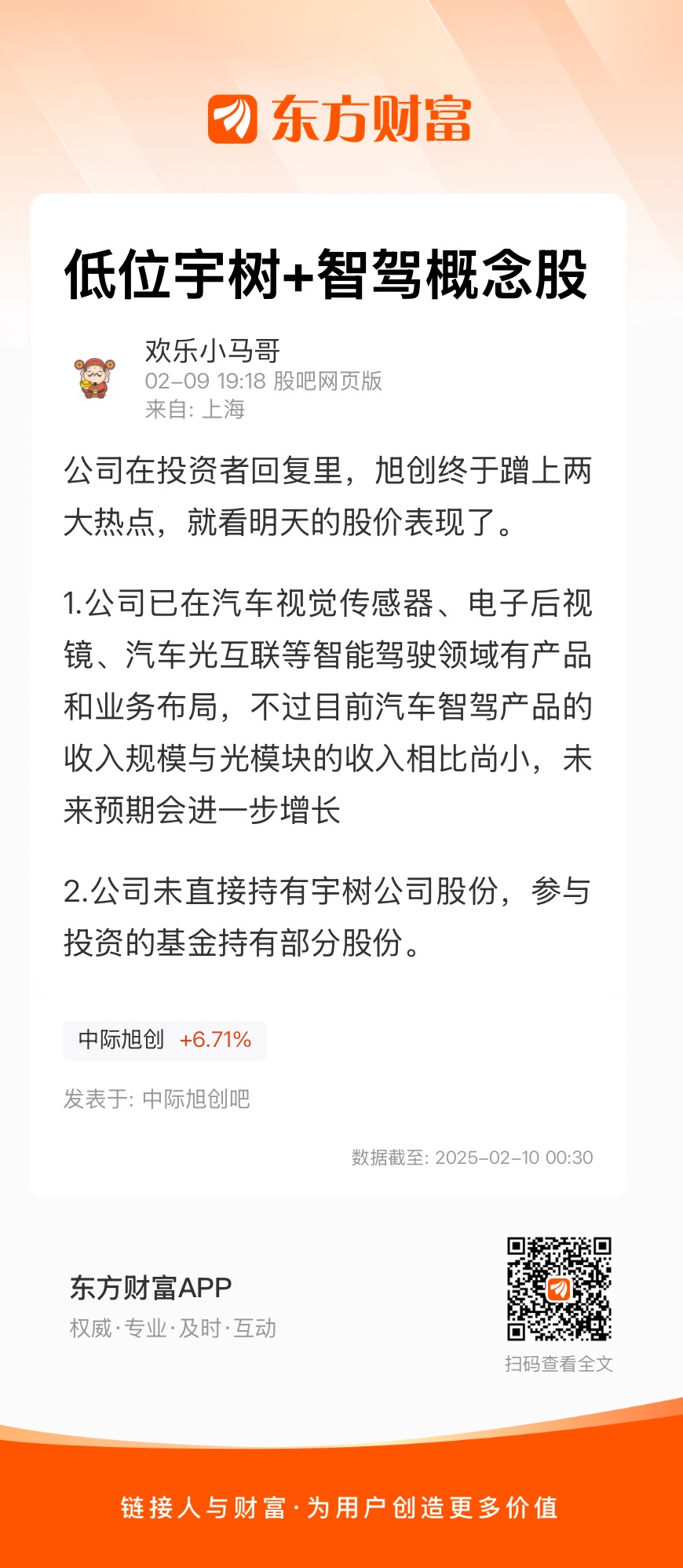 公司在投资者回复里,旭创终于蹭上两大热点,就看明天的股价表现了。