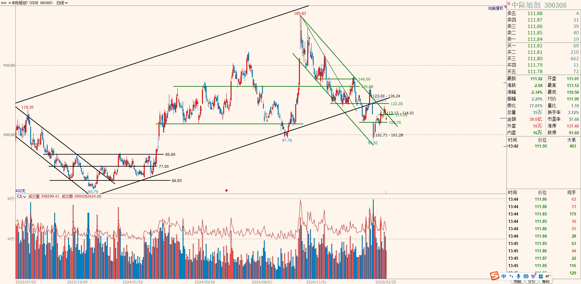 股价在上周五奋力上攻,小幅突破下降通道的上边界,无奈后劲不足,当前再次回到下降通