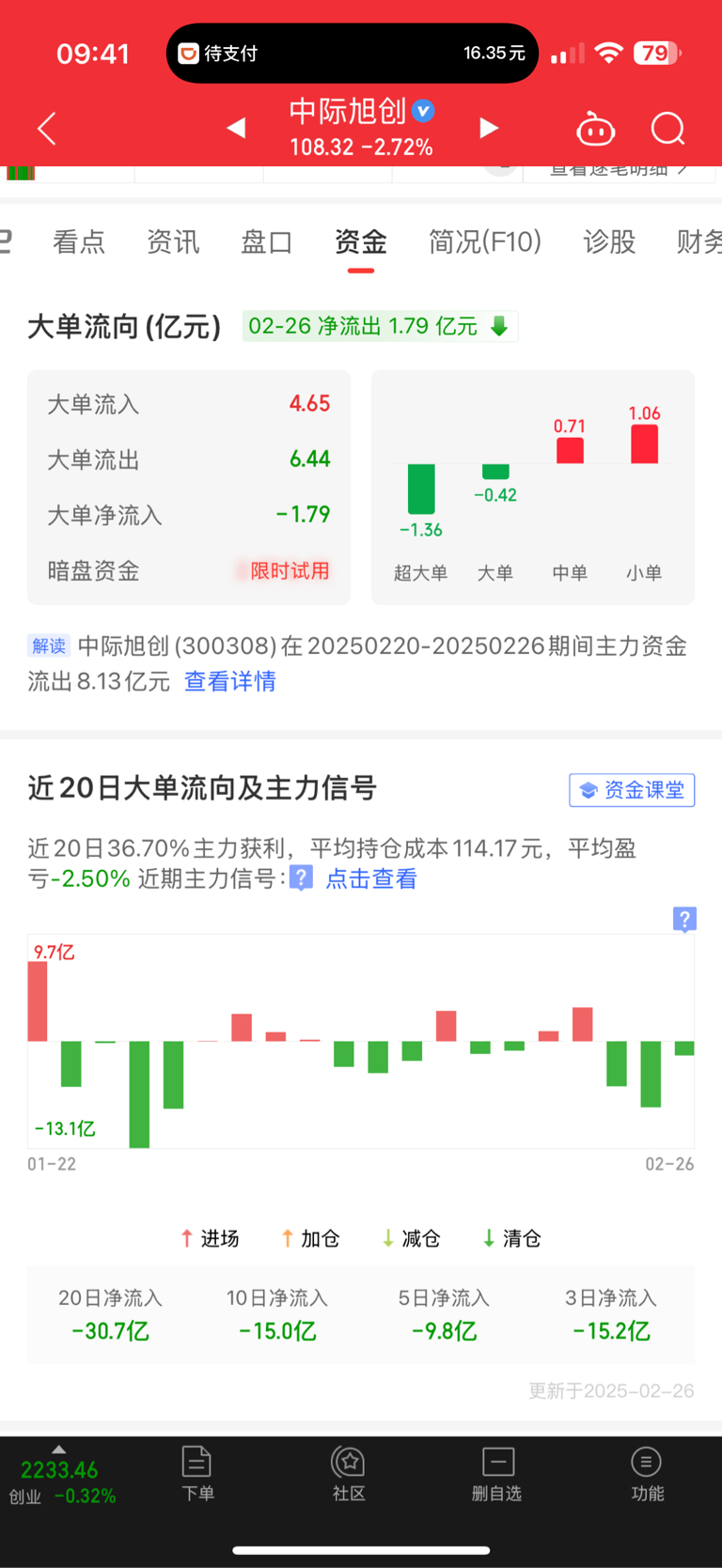 $中际旭创(SZ300308)$ 中际旭创就是大空头做空a股的票,外资已经在撤离中际旭创,机构只会砸盘,散户不信邪就接盘吧,这票只会跌跌不休的