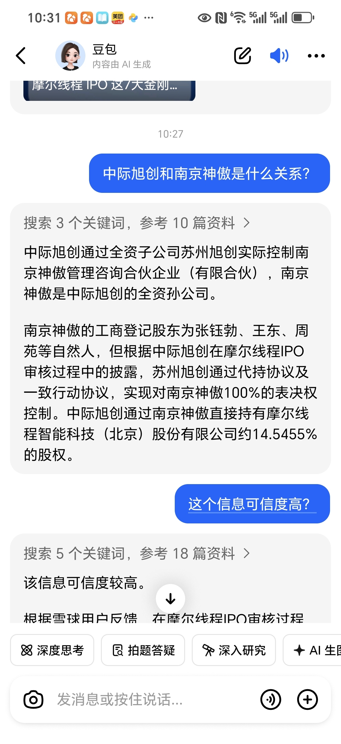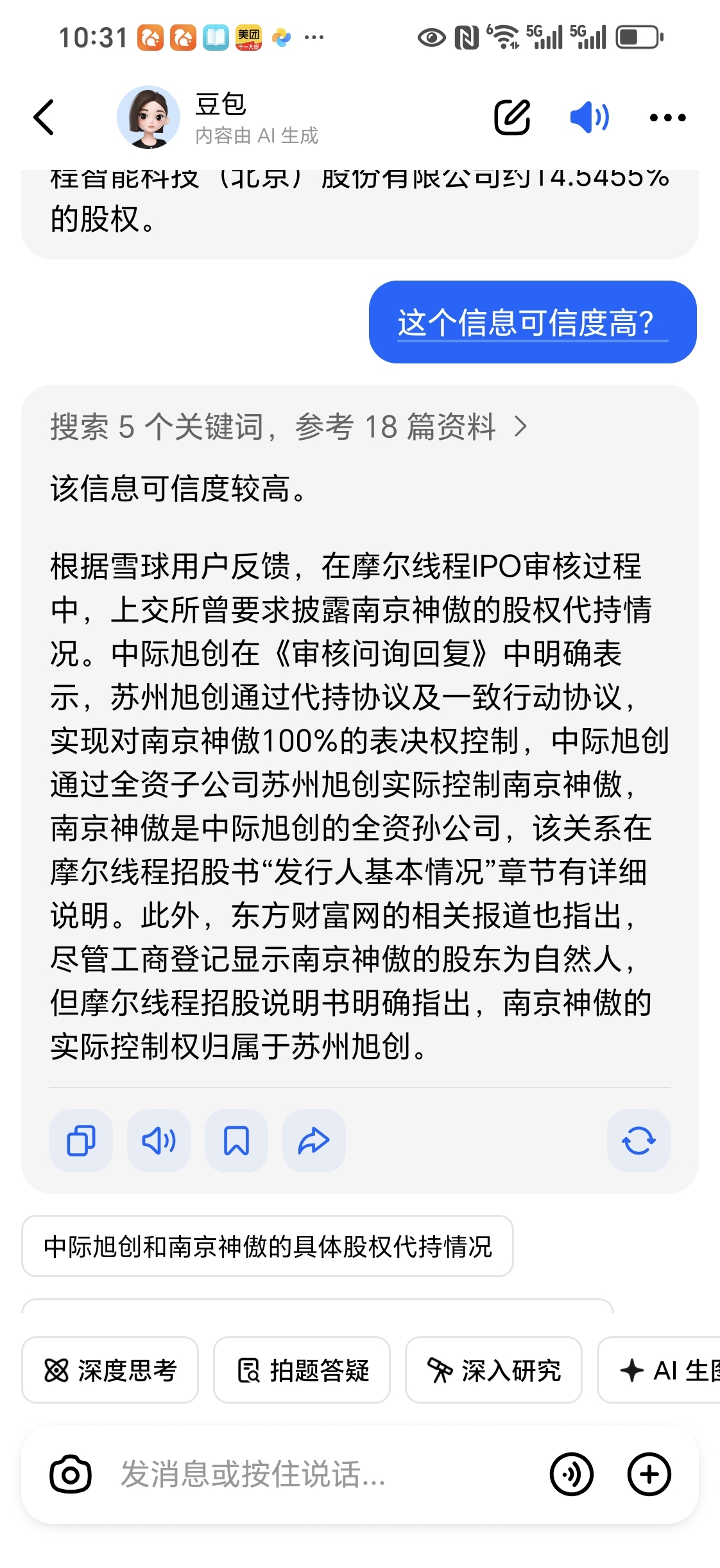 $中际旭创(SZ300308)$ 中际旭创通过孙公司持有摩尔线程14.5455的股份。