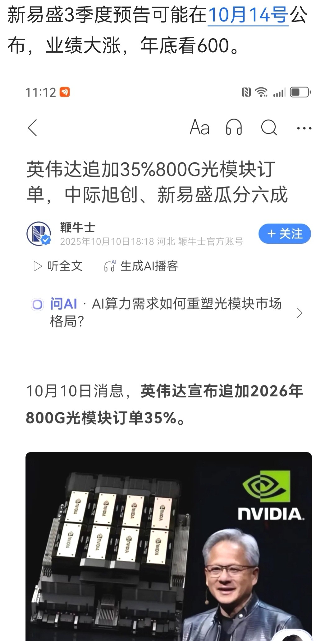 $中际旭创(SZ300308)$ 利好来了!不知道我现在唱多来不来得及,希望周一少跌点