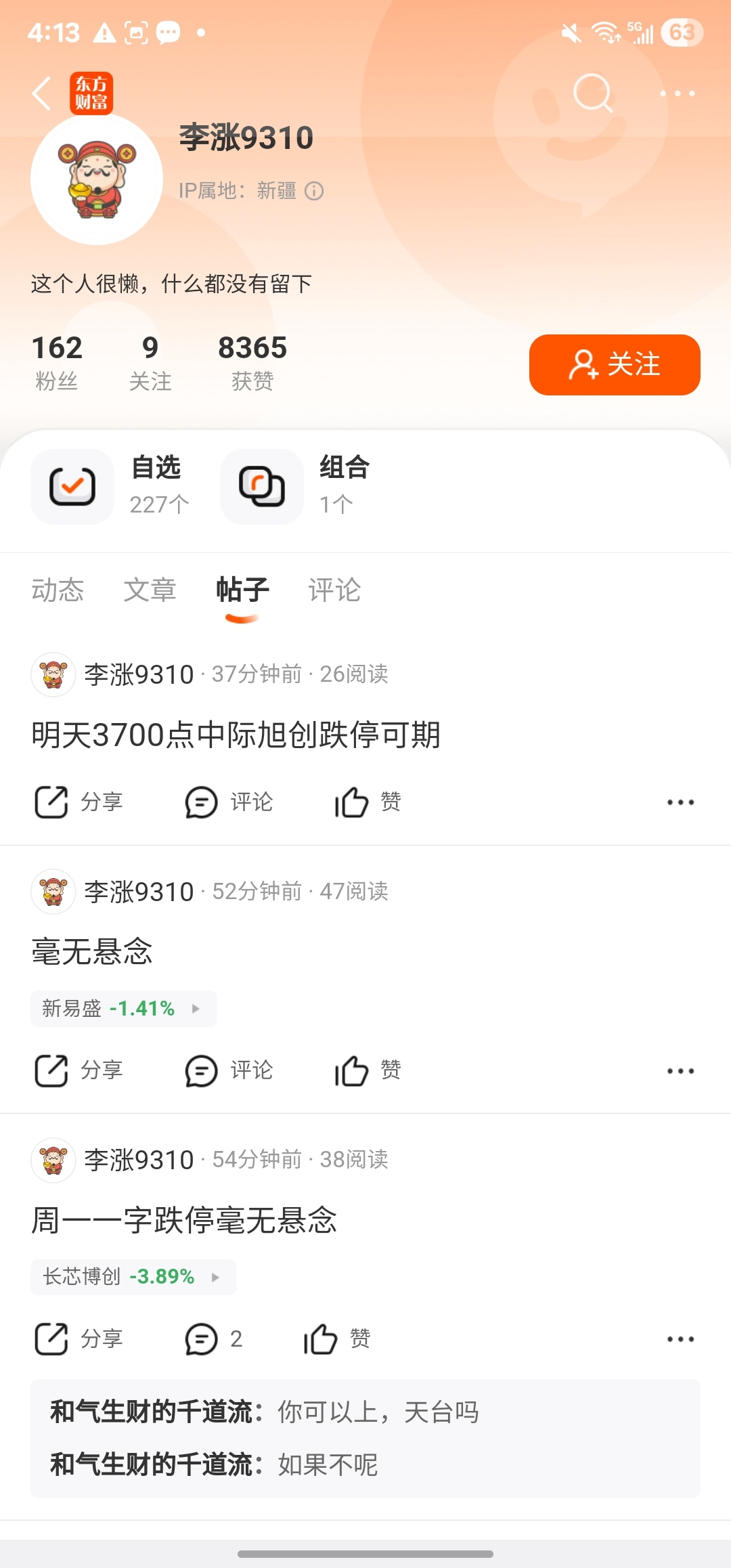 温馨提示: 1.根据《证券法》规定,禁止编造、传播虚假信息或者误导性信息,扰乱证券市场;2.用户在本社区发表的所有资料、言论等仅代表个人观点,与本网站立场无关,不对您构成任何投资建议。用户应基于自己的独立判断,自行决定证券投资并承担相应风险。《东方财富社区管理规定》
