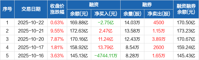 中际旭创:融资净偿还2.75亿元,两市排名第四(10-22)