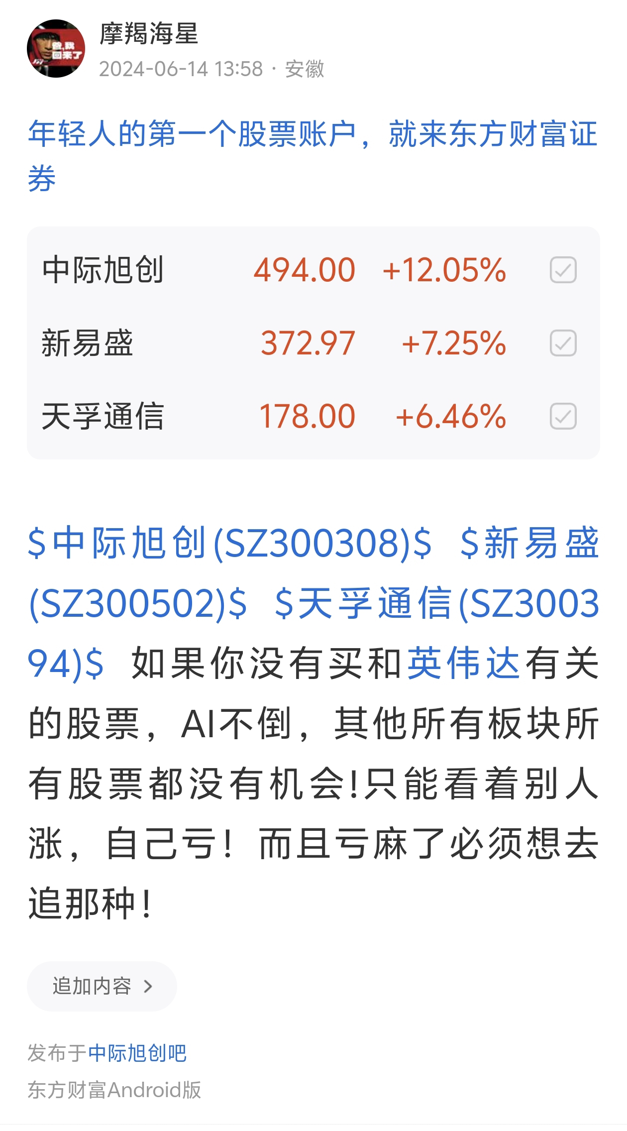 郑重声明:用户在财富号/股吧/博客等社区发表的所有信息(包括但不限于文字、视频、音频、数据及图表)仅代表个人观点,与本网站立场无关,不对您构成任何投资建议,据此操作风险自担。请勿相信代客理财、免费荐股和炒股培训等宣传内容,远离非法证券活动。请勿添加发言用户的手机号码、公众号、微博、微信及QQ等信息,谨防上当受骗!