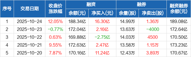 中际旭创:融资余额188.34亿元,创历史新高(10-24)