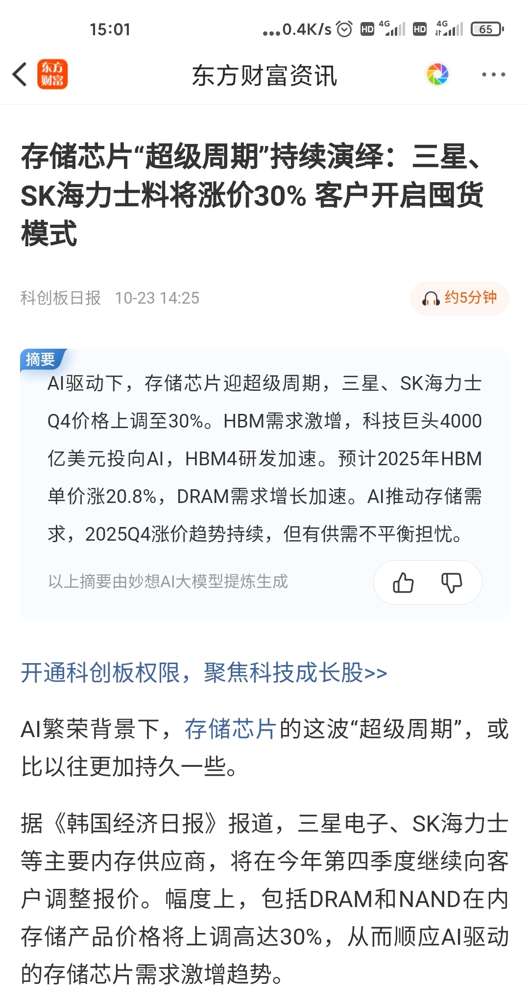 英伟达特大暴涨,市值五万亿美元了!在AI驱动下,存储芯片迎超级周期:三星、SK海力士将涨价30%,客户开始囤货模式!大为股份,是储存芯片龙头,盘小质优,目标翻五倍!大有可为$新易盛(SZ300502)$ $天孚通信(SZ300394)$