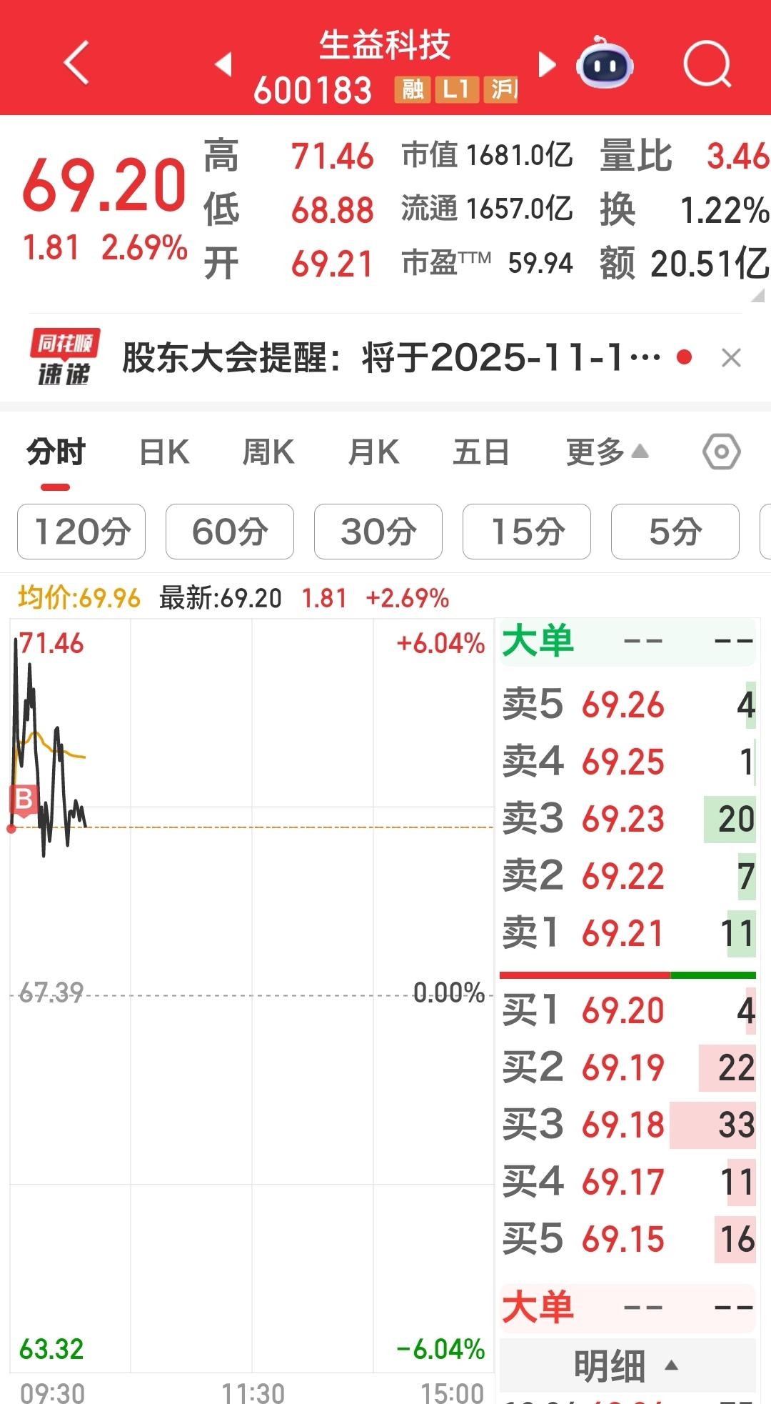 今天一早集合竞价538.01元止盈了$中际旭创(SZ300308)$ ,69.18元开始投向PCB高频覆铜板龙头$生益科技(SH600183)$ ,公司自主研发的多系列新品公司突破高频覆铜板技术难关,产品获得英伟达、华为、中兴、诺基亚等知名终端认证,明年股价将继续高歌猛进。