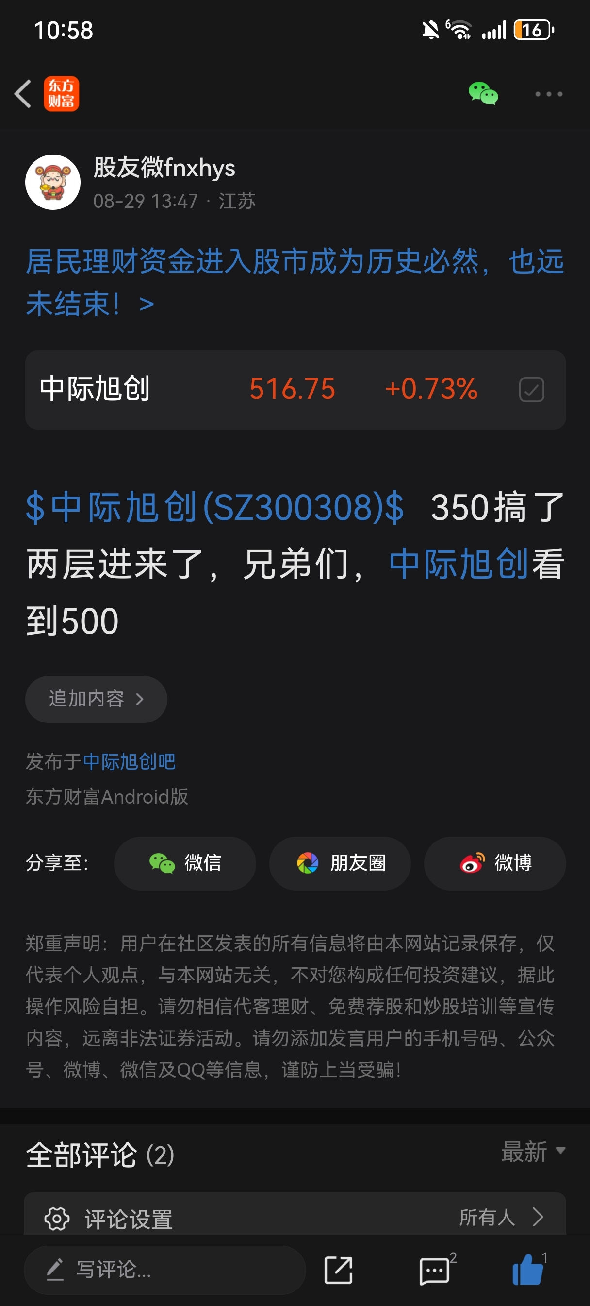 $中际旭创(SZ300308)$ 兄弟们,牛不牛逼,目前看到1000一股。。。