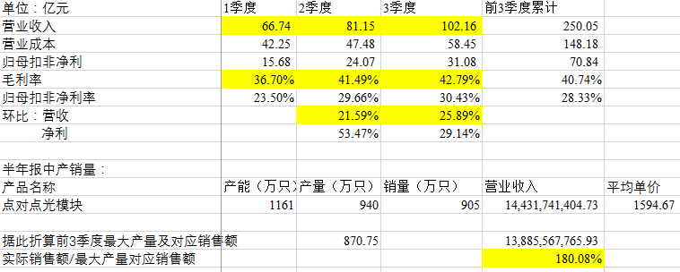 中际3季报:营收环比增长,新产能投产,毛利率上升——有可能是1.6T开始小量供货