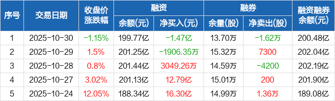 中际旭创:融资净偿还1.47亿元,融资余额199.77亿元(10-30)
