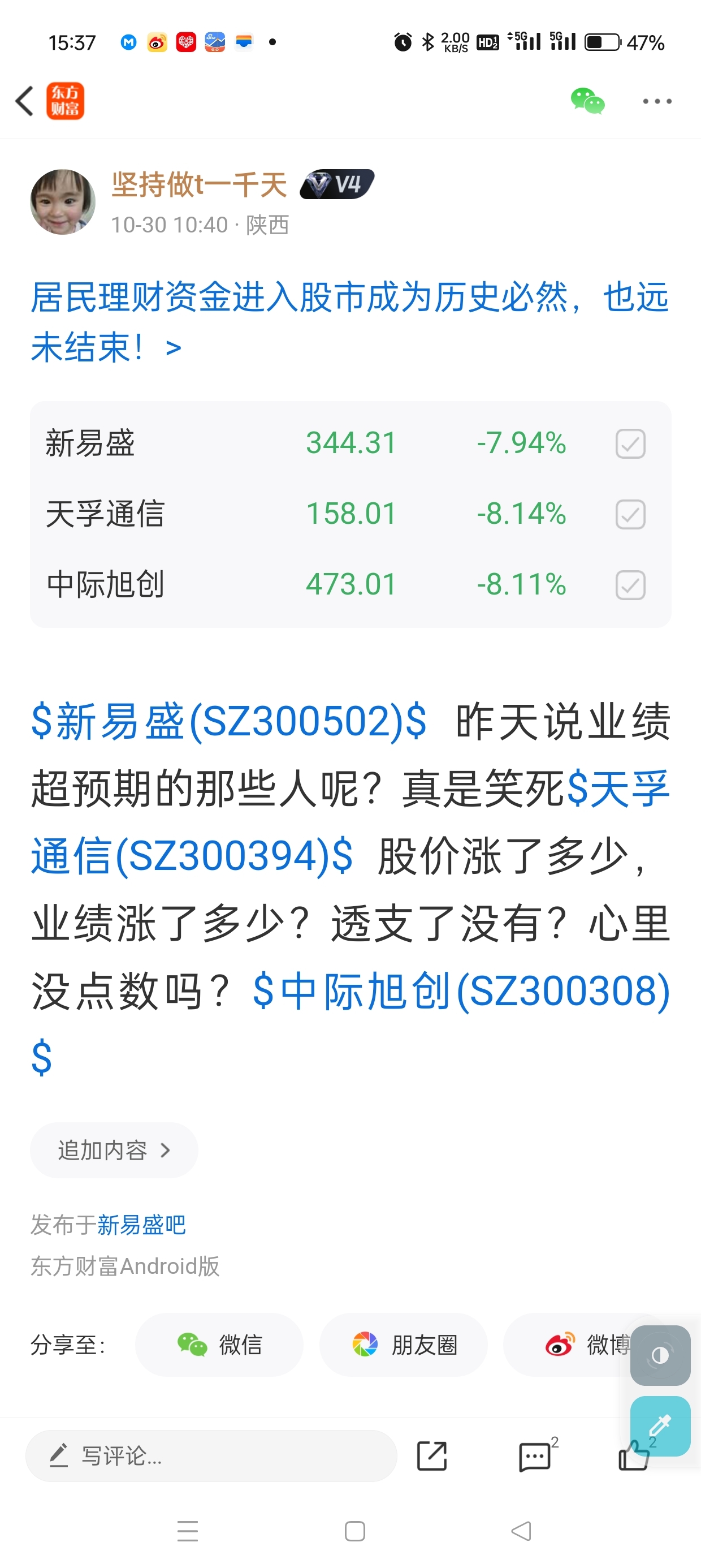 $中际旭创(SZ300308)$ 昨天说业绩超预期的那些人呢?涨了八倍,再好的业绩也不再是利好了,大家反正要注意风险了。