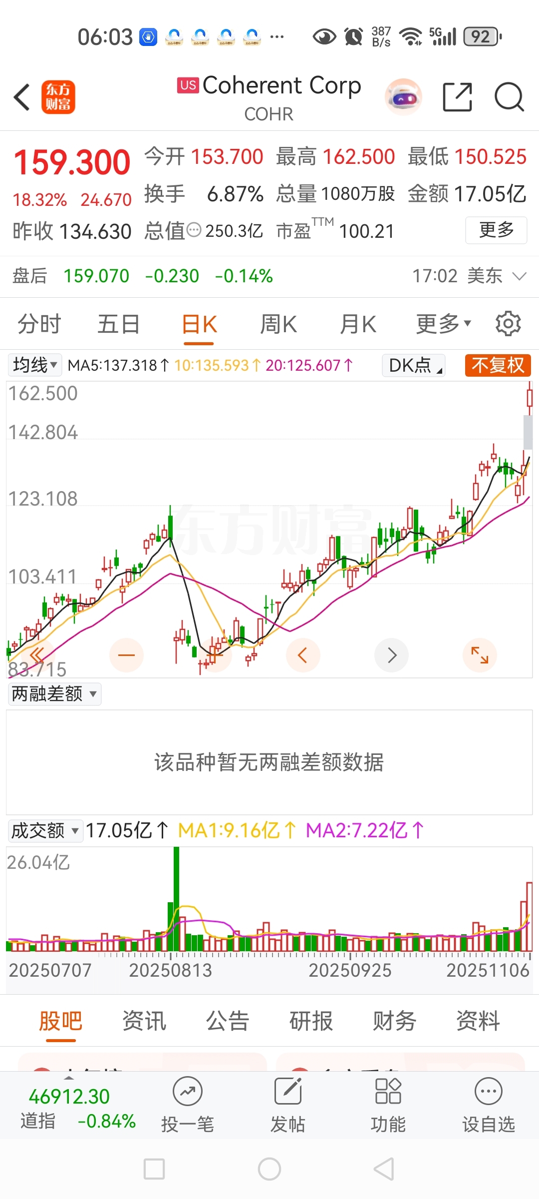 美国光模块龙头COHR(高意)大涨18%!再创历史新高!