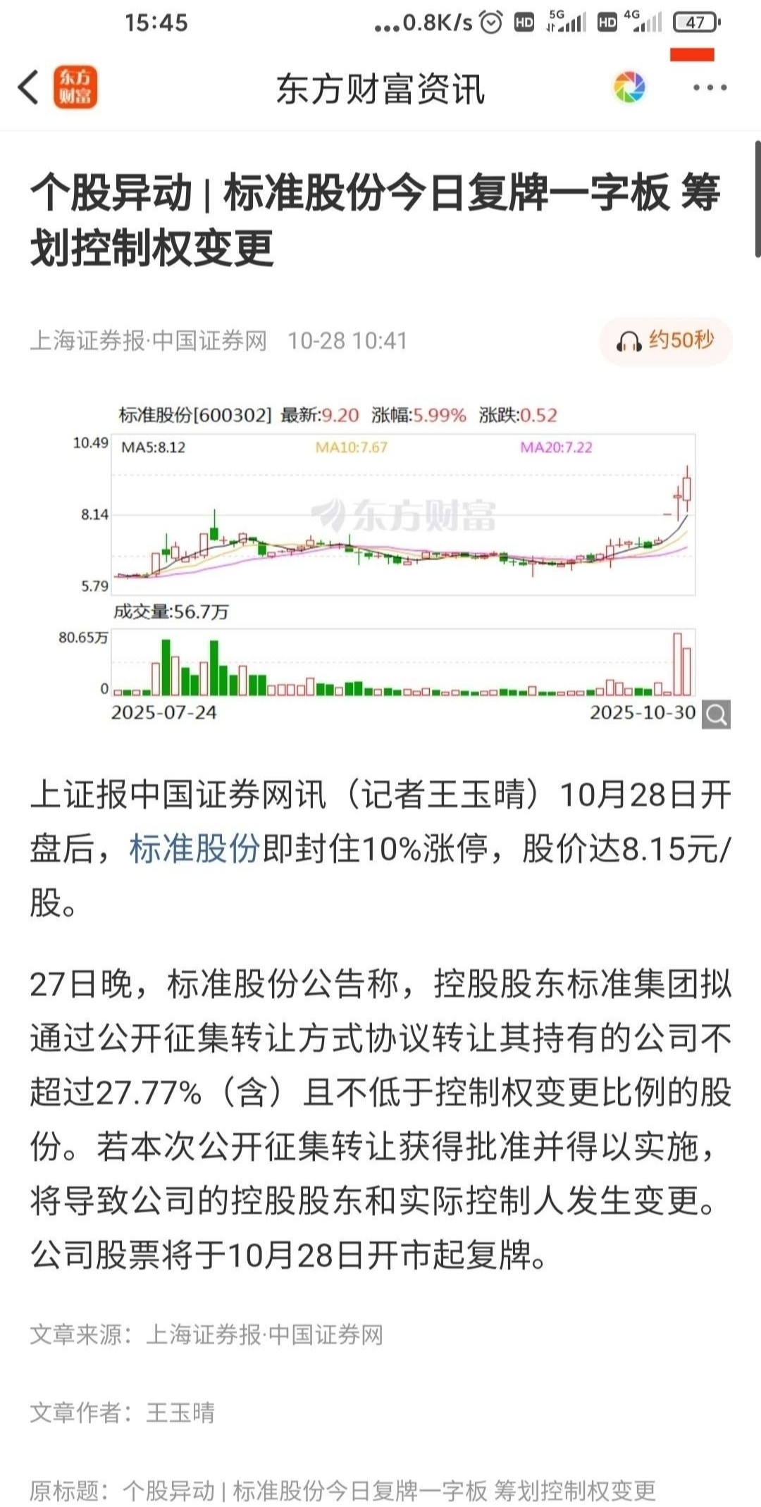 标准股份,已经公告:马上就要重组咯,史上最明确的重组股,盘小质优,起码要翻五倍$天孚通信(SZ300394)$ $阳光电源(SZ300274)$