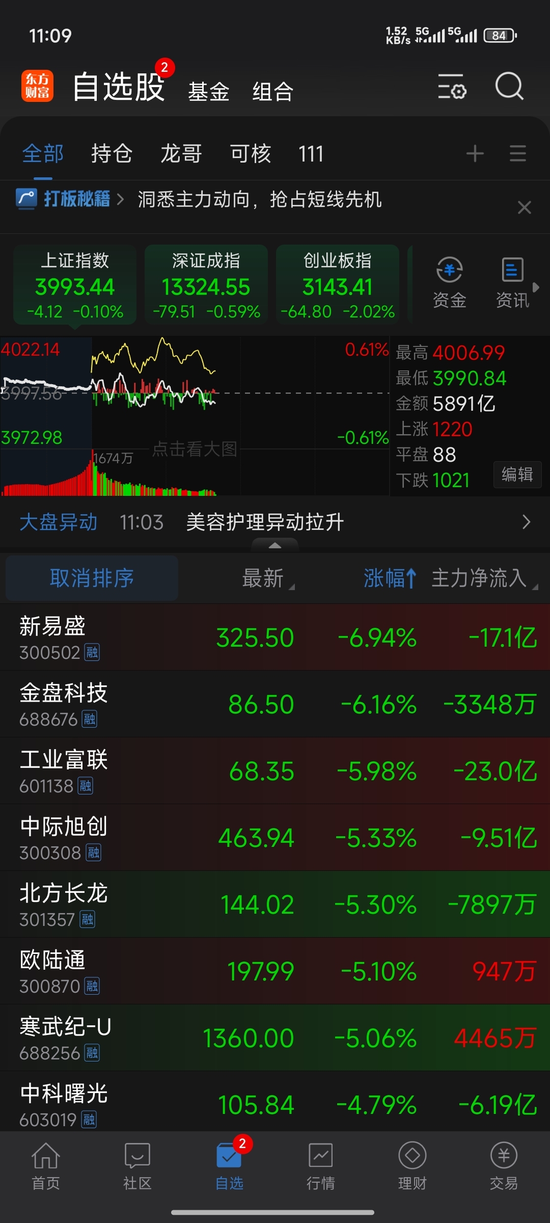 $中际旭创(SZ300308)$ 大盘都被这些货带绿了