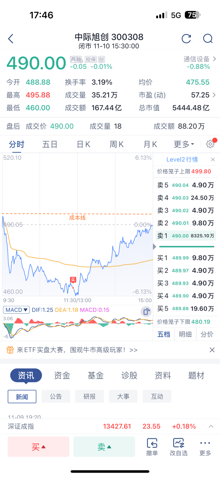 $中际旭创(SZ300308)$ 兄弟们冲冲冲