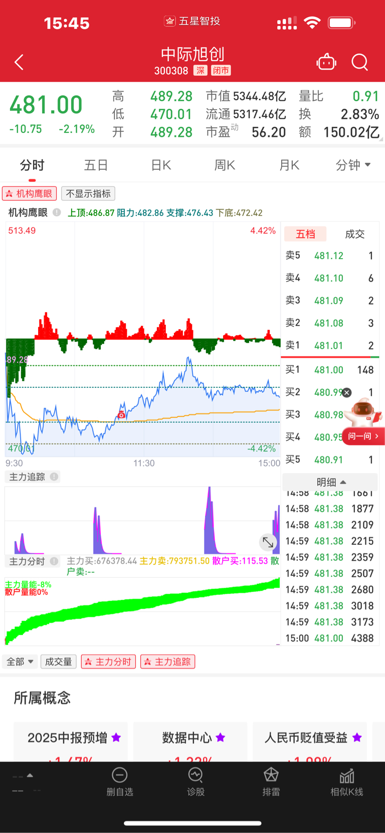 $中际旭创(SZ300308)$ 主力压盘太严重了