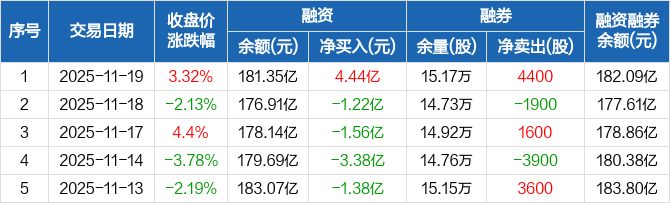 中际旭创:融资净买入4.44亿元,两市排名第一(11-19)