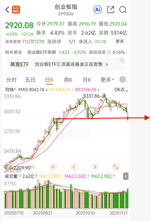 市场比我想象的很糟糕的情况还要更糟糕!!!cpo稍微一跳水就把市场带到沟里去了。要知道中际旭创还没有开始破位呢…如果破位,创业板又当如何?唉,想蹲个反弹再减仓,这个机会都等不到,真是烦,继续减仓,周三左右清到一层仓位,然后不折腾了,一月底再进场,可能接下来几天还有反弹,不等了,剩下的兄弟们发财。$中际旭创(SZ300308)$$天赐材料(SZ002709)$$赣锋锂业(SZ002460)$