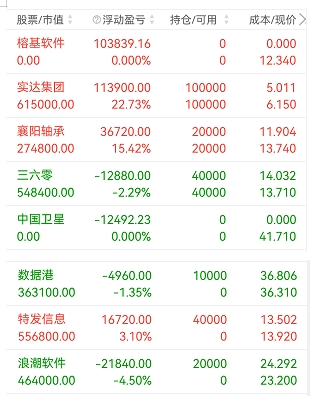 $榕基软件(SZ002474)$榕基软件:个股作为AI软件的龙头标的而言,在今天低开的情况之下,顺势向水下神态,没有出现反弹的走势。短线上来讲,5天线虽然有所支撑,但今天的走势来讲,明显出现走弱的迹象,而且板块内部有其他的连板龙头卡位的迹象,所以个股很大概率要丧失龙头的地位,综合考虑之下,海哥因此选择离开。
