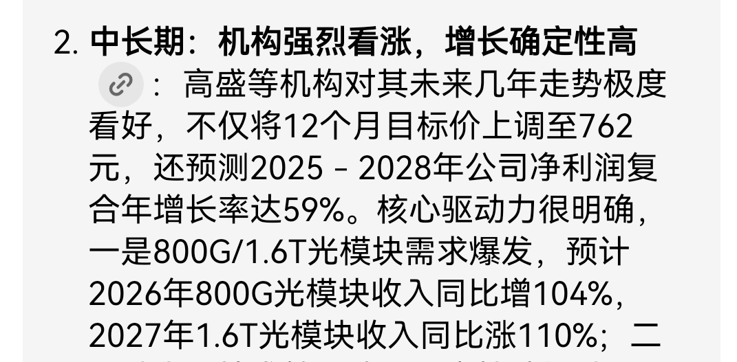 $中际旭创(SZ300308)$ 高盛给与上调12个月目标价726元