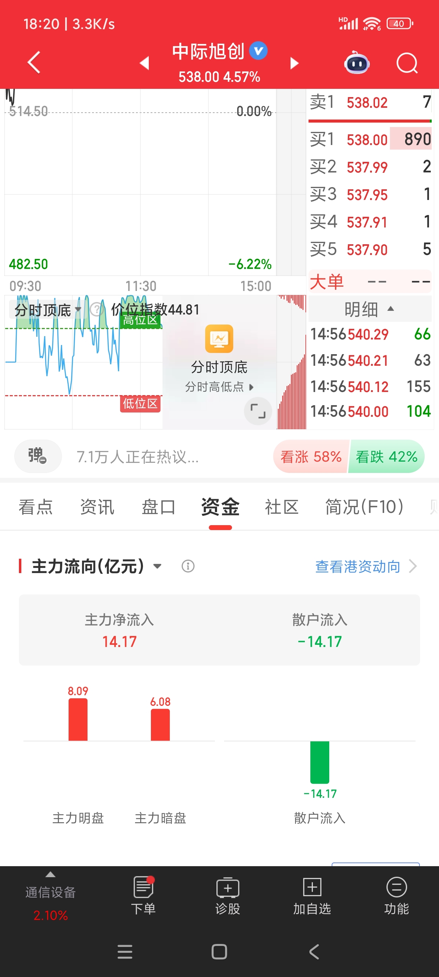 $中际旭创(SZ300308)$ 尾盘跑了一个亿,一下跌掉3元