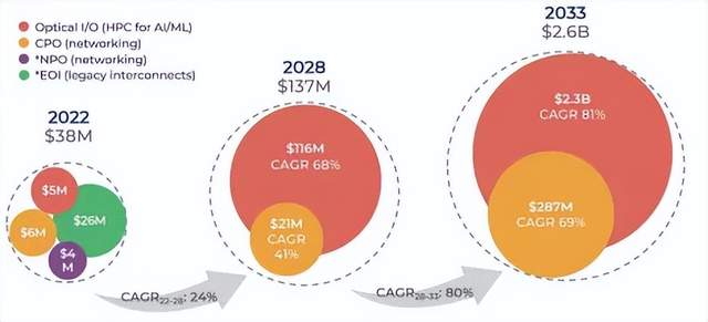 光电共封装市场规模(来源:YOLE)