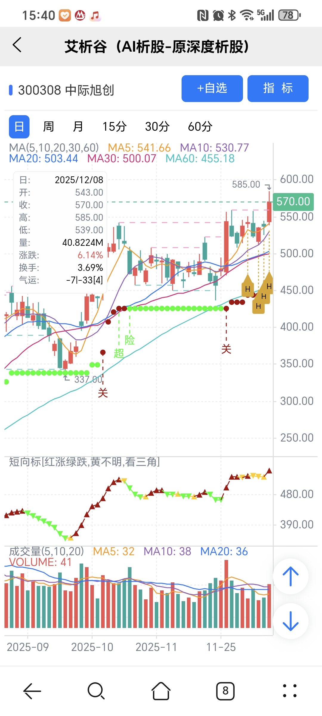 红绿小圆点是艾析谷的量化指标-超级短趋线,是趋势跟踪+突破类的量化指标,完全免费。