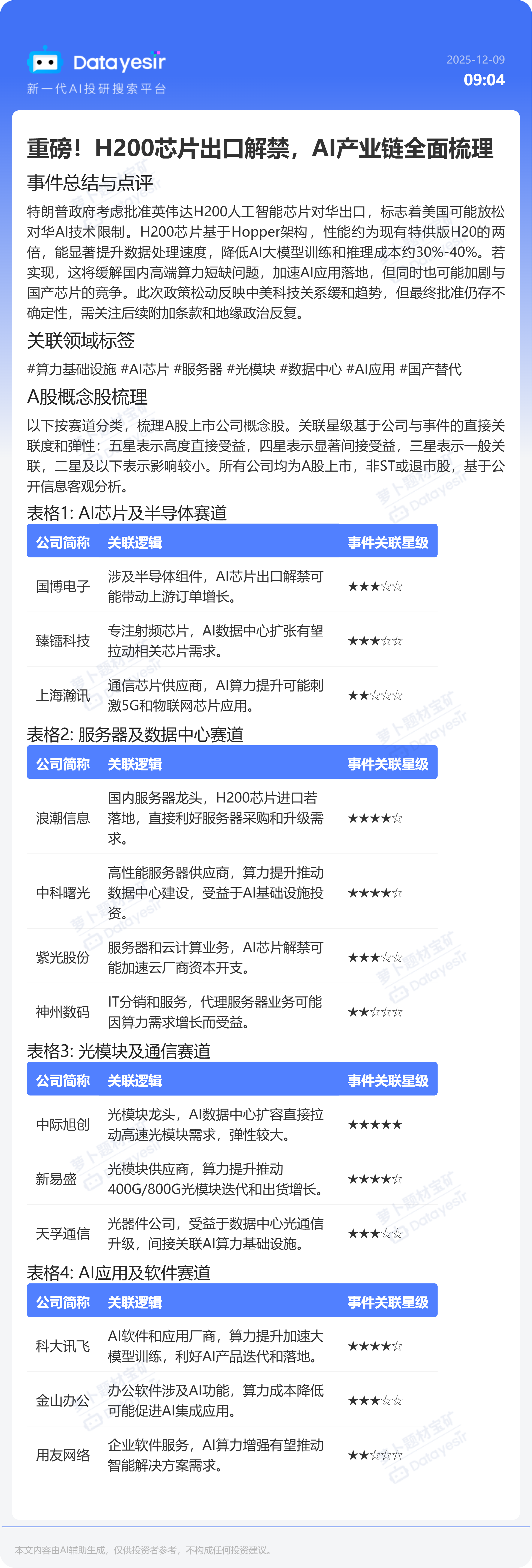 重磅!H200芯片出口解禁,AI产业链全面梳理
