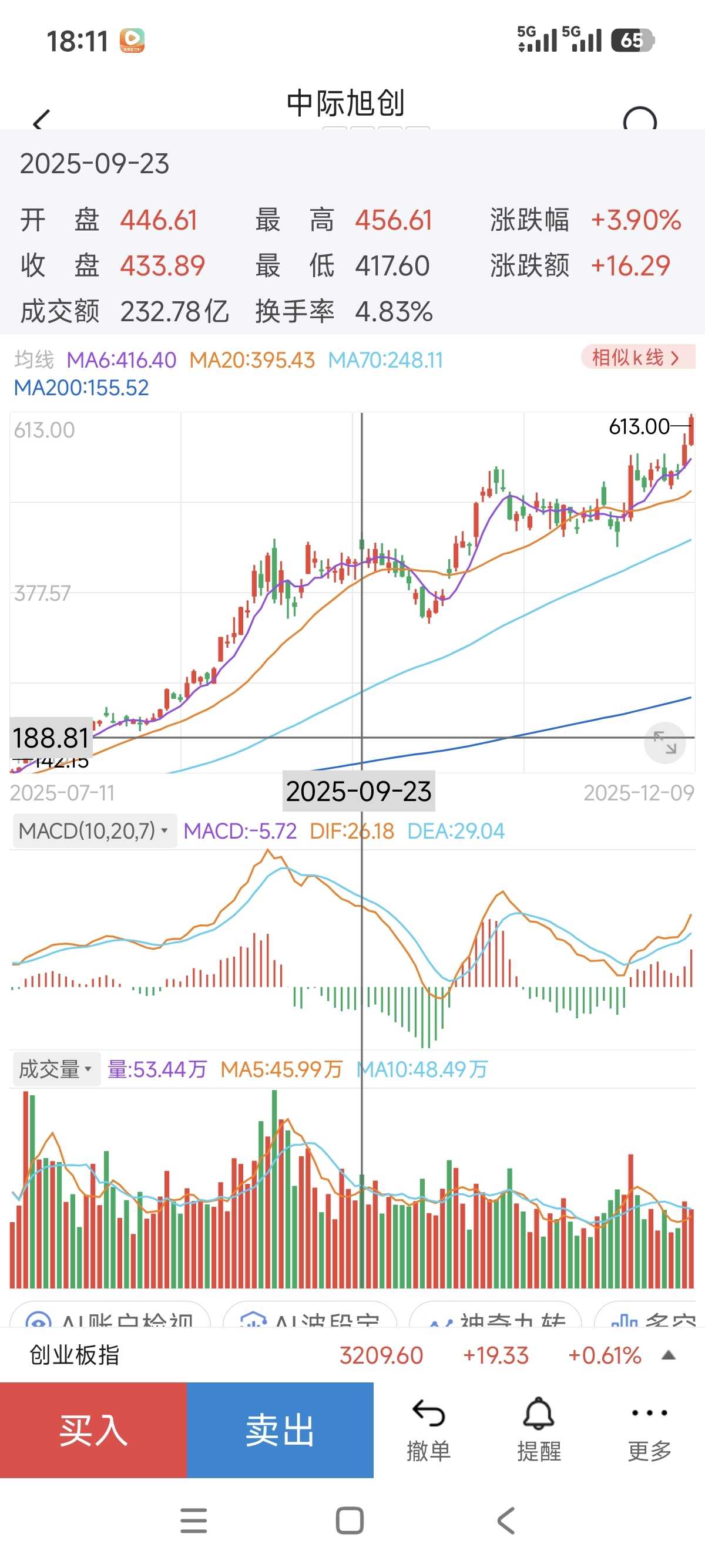 1)看到没有?中际旭创,日线有获利盘出逃了!买盘在减少,卖盘在增加……2)这要是
