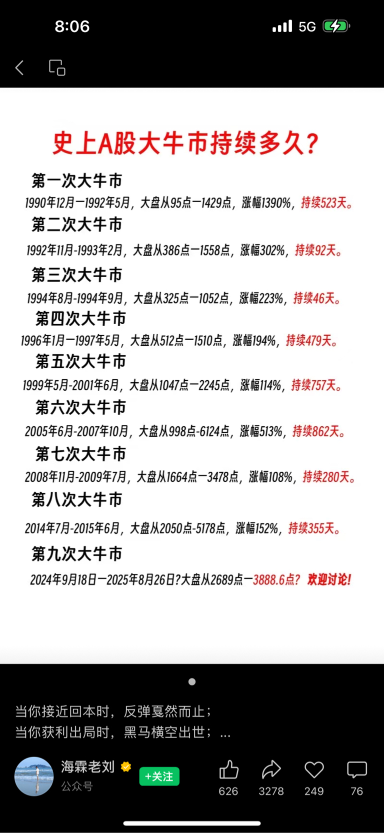 大家都来猜一下吧,本轮牛市行情,预计什么时候结束