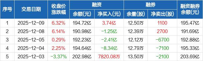 中际旭创融资融券信息显示,2025年12月9日融资净买入3.74亿元;融资余额194.72亿元,较前一日增加1.96%。