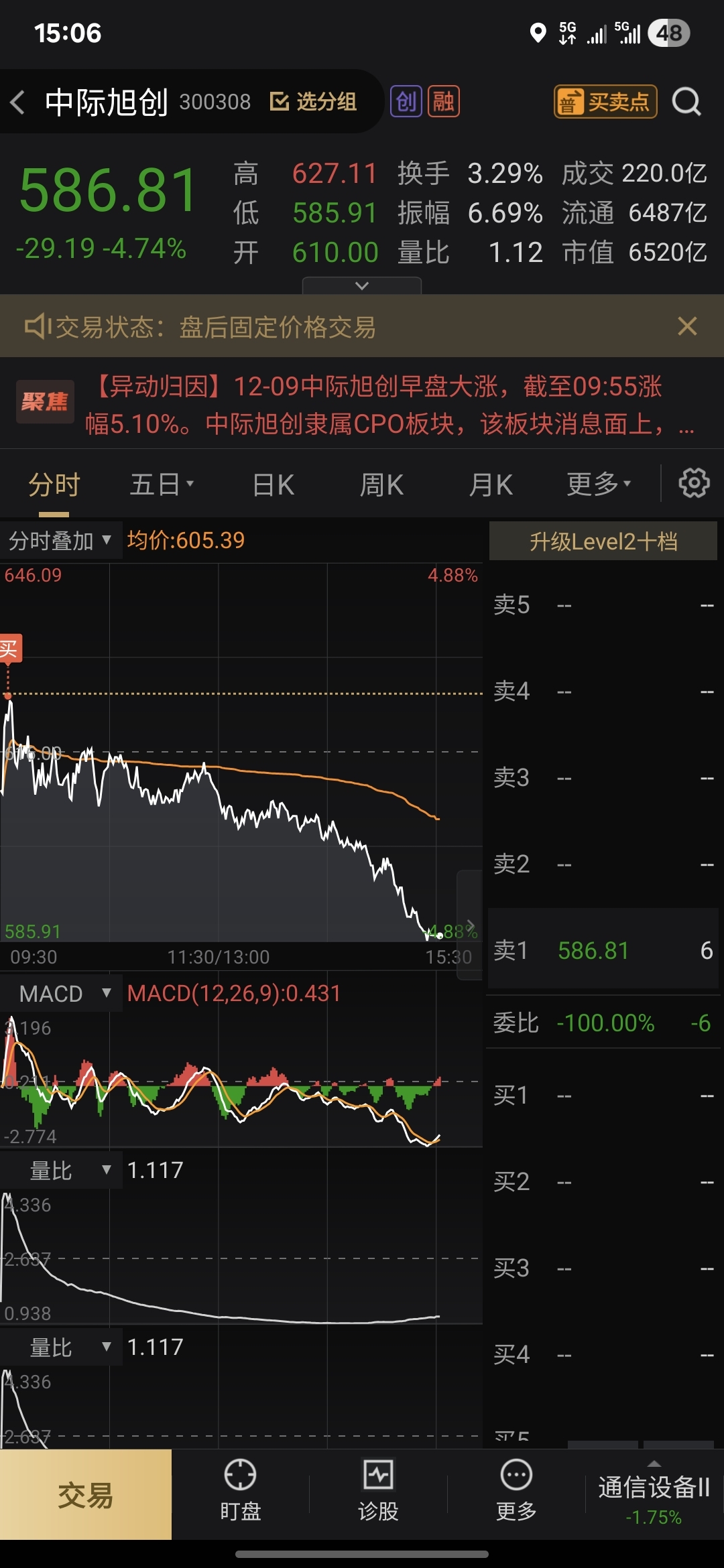 $中际旭创(SZ300308)$ 主力这票你别玩了 大家快跑因为我来了
