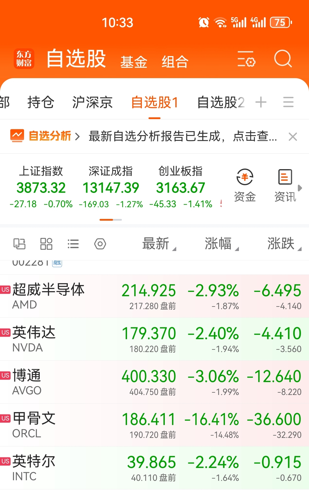 $中际旭创(SZ300308)$ 美股大跌,甲骨文暴跌,希望大A走自己的路。