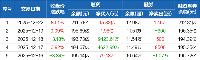 中际旭创:融资余额211.51亿元,创历史新高(12-22)