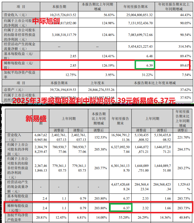 龙头新易盛和中际旭创3季报都是每股6.38元,可新易盛落后中际旭创150元。