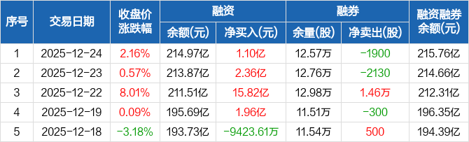 中际旭创:融资余额214.97亿元,创历史新高(12-24)