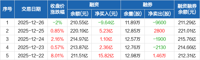 中际旭创:融资净偿还9.64亿元,融资余额210.55亿元(12-26)